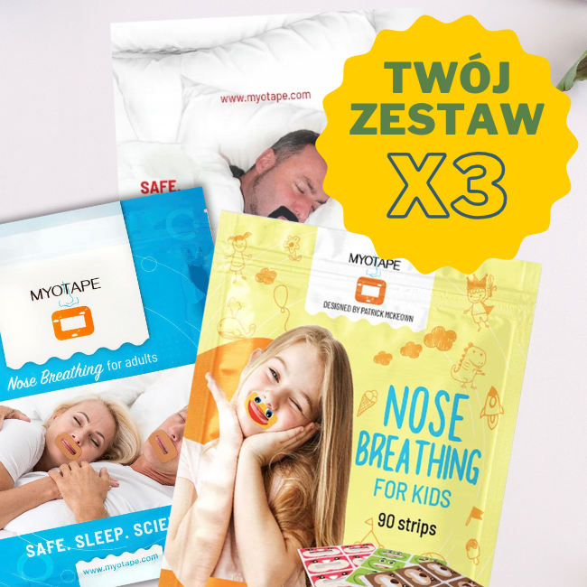 Oryginalne plastry dla dorosłych oddech nosem na usta. Plastry MyoTape zapobiegają chrapaniu, poprawiają jakość snu oraz pomagają zmienić nawyk oddychania przez usta. Myotape został stworzony w celu bezpiecznego oddychania przez nas, nie zakrywa ust, ale je otacza i dzięki elastyczności taśmy kinezjologicznej stymuluje ich domknięcie.